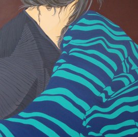 In the my paintings and drawings, I am portraying sleepless women with sheets in bed, their faces covered with their hands or their hair, and the drawings are the same. Everything is colourful; I have used lots of geometric patterns in order to question the perspective of the body that was hidden under the sheets.