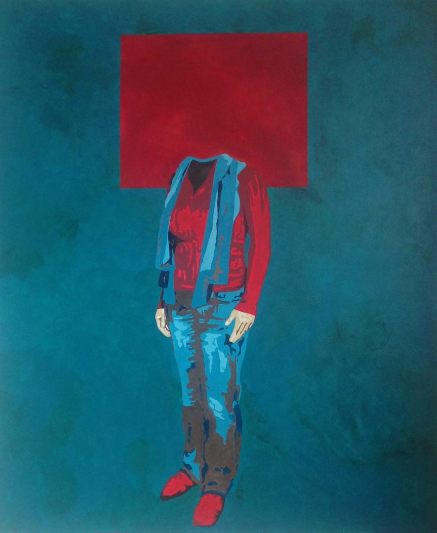 Some characters became bold and certain events began to appear more impactful in the way of my life. I started to write about the most important effects that each event had had on my life. The characters that I have painted have been present in my very personal memories. I started to portray the figures as if I was having a dialogue with them. I wanted to see if I could meet with them, how it would happen. I have used my own figure in all these paintings because of multiple reasons. Most of my artworks are self performances wherein I use my own body and my own face and figure in order to create the scene I want. Many artists do so. Here in this series I am the responsible mind putting these (mostly) public characters in one space (which is blue). I am there as an interpreter or as a defendant who tends to plead guilty to the court that is in the mind of the audience.