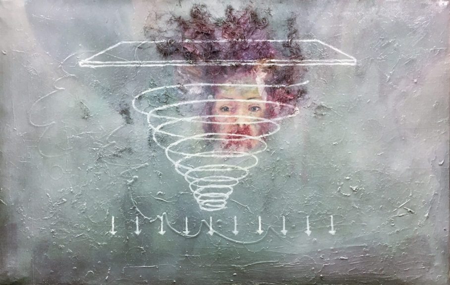 “At the Border between the Official and the Excluded” and “First Level of Intentionality” – there is a certain oppressive quality to both of these. They are darkly surreal, apocalyptic, dystopian, difficult to describe. I even see hints of an environmental disaster. How do these paintings relate to our current social issues?