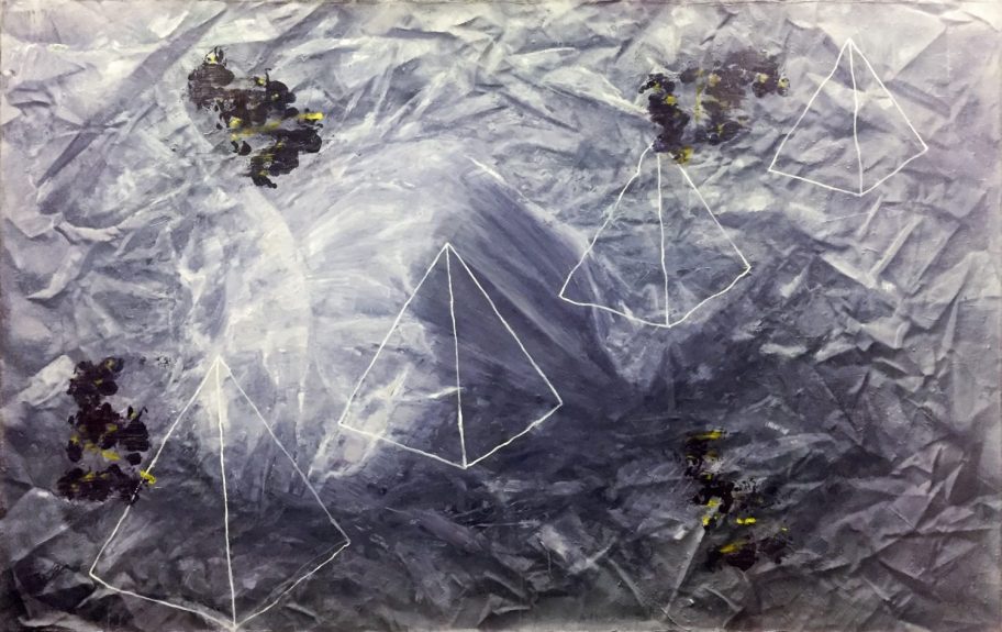 A lot of your works contain geometric forms and shapes, grids, cages, pyramids, etc. in chaotic, fluid surroundings. Do they stand for anything?