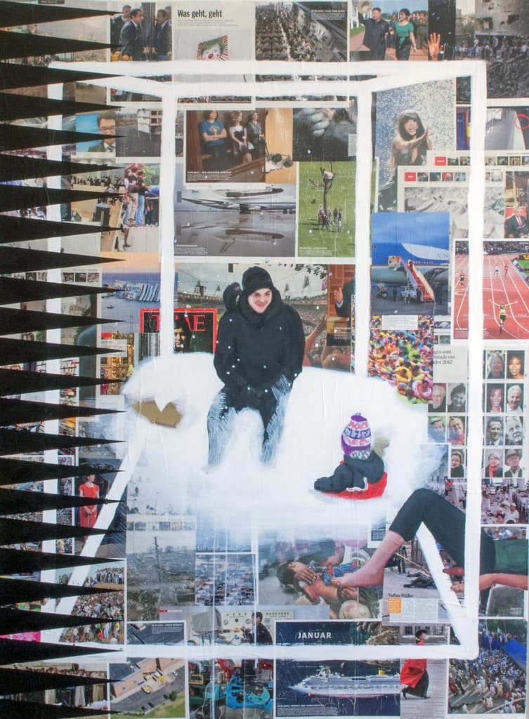 I think a lot about how my work can be political without painting images of people in a vulnerable position. By gluing news photographs on the canvas I avoided this problem. Also, this work was about the framing and subjective perspective on world events. The documentary presentation is a construction and an indication of which story about the world is norm.