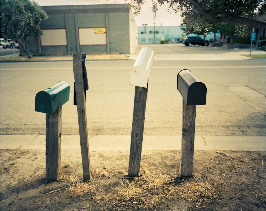Empty mailboxes of migrant workers in Mendota; California. One of them belongs to the house of Marco Belloso; a 31-year old from El Salvador; who lives with four other farm laborers. Belloso works in the field nine hours a day; seven days a week; picking tomatoes and onions and clearing weeds; leaving his hands calloused and cracked. He sends a portion of his minimum-wage earnings to his wife and children in El Salvador so they can buy shoes and other necessities. However; he often feels depressed. “I’m so far away; ” said Belloso, “being here is practically like being in prison, only going directly from home to work and back home again.” His housemate Pedro Miranda, who also works in the field, had just received news that two of his brothers were shot and killed at a coffee shop back home. Because of his financial and immigrant status, he was not able to return to bury his brothers. And he still owes $1500 to the coyote that brought him to the United States.”