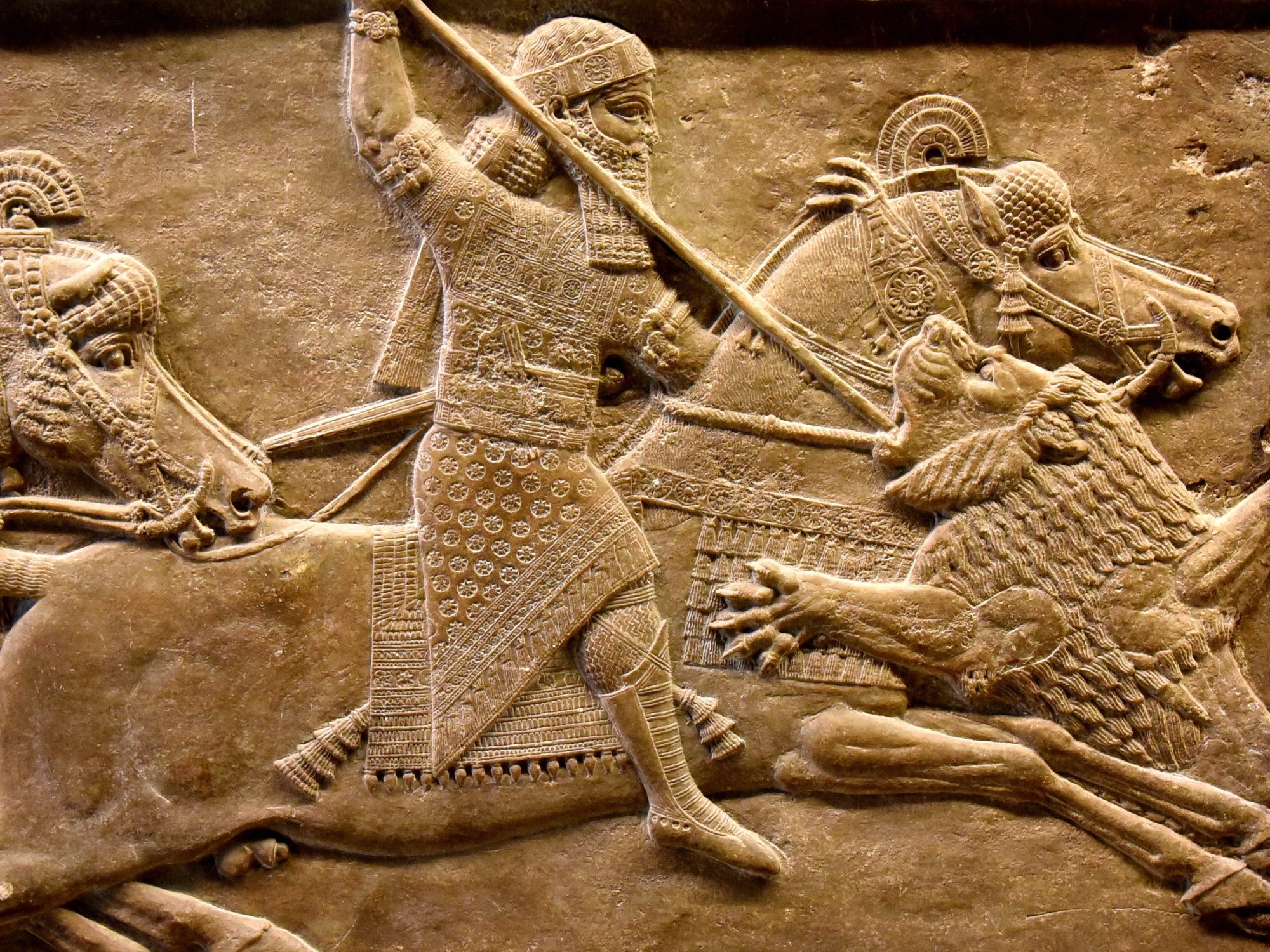 Quite a lot of art is about military might. The Assyrian relief “The Lion Hunt of Ashurbanipal” (c. 645–635 BC) from Nineveh, at the British Museum, is absolutely stunning. It unfolds just like a cartoon strip or dramatic movie. The lion is released from the cage, the king kills him, the lion is wounded, is shown dying, then dead. What kind of political context is this coming from?
