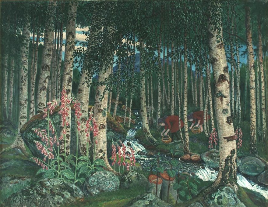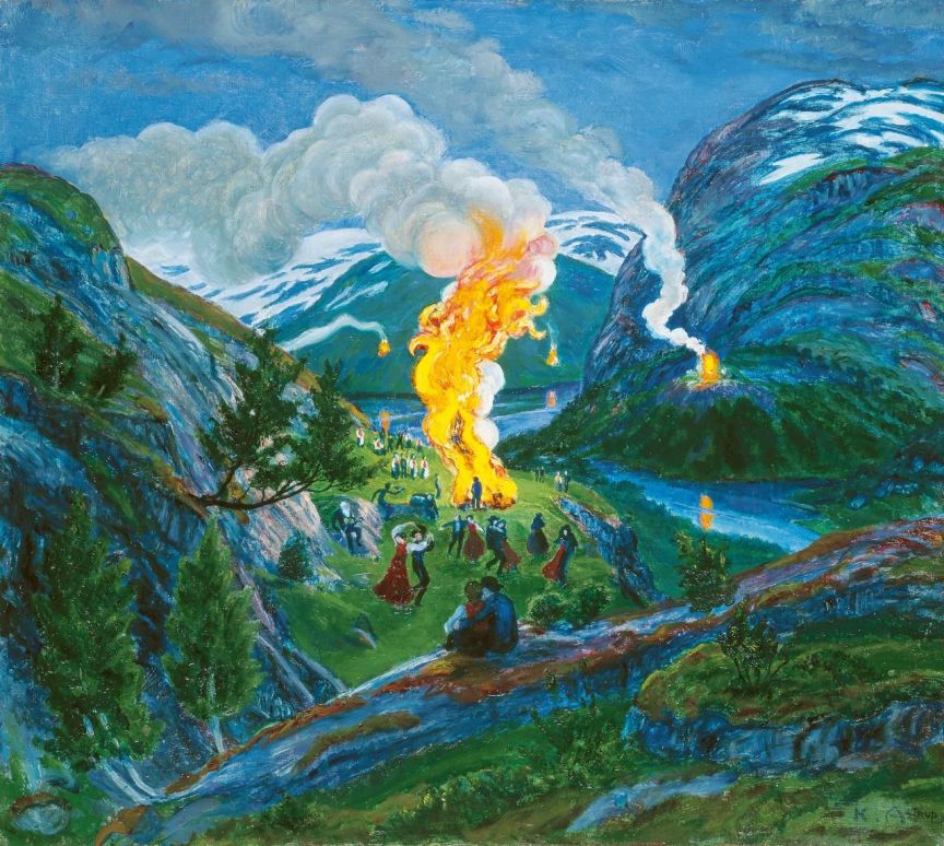 When it comes to Norwegian painting, most of us will remember Edvard Munch (1863-1944)—the man behind the iconic Scream. Some time back I discovered Nikolai Astrup, another renowned and beloved artist of the country. He distinguished himself as a painter and printer and is, above all, known for his wild and lush landscapes and depictions of traditional life in Vestlandet (western Norway). Like J.C. Dahl nearly one hundred years earlier, Astrup helped shape the way we view Vestlandet and, in fact, the whole country.