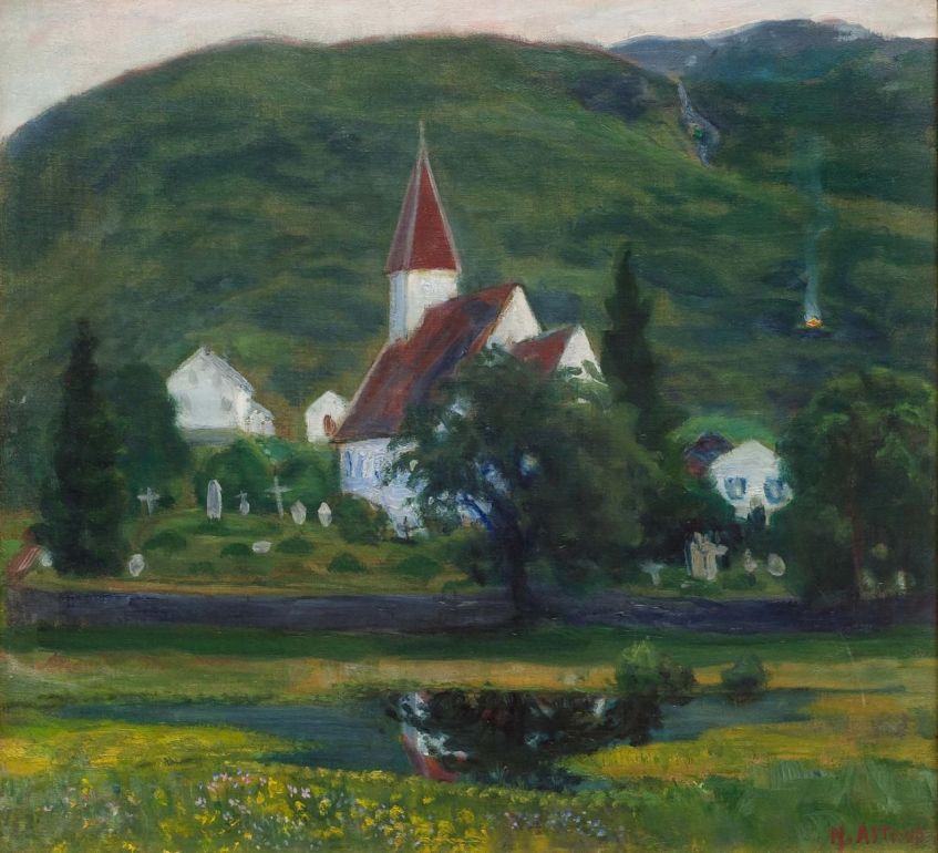 Nikolai Astrup was born in Bremanger, Nordfjord in 1880. His family moved shortly thereafter to Ålhus in Jølster, where his father was a priest. His relationship with his father was marked at times by opposition and conflict, most likely because Nikolai could not quite accept the strict form of Christianity practiced at home. In addition, his wish to become an artist went against his family’s expectations.