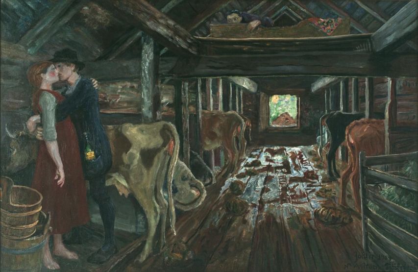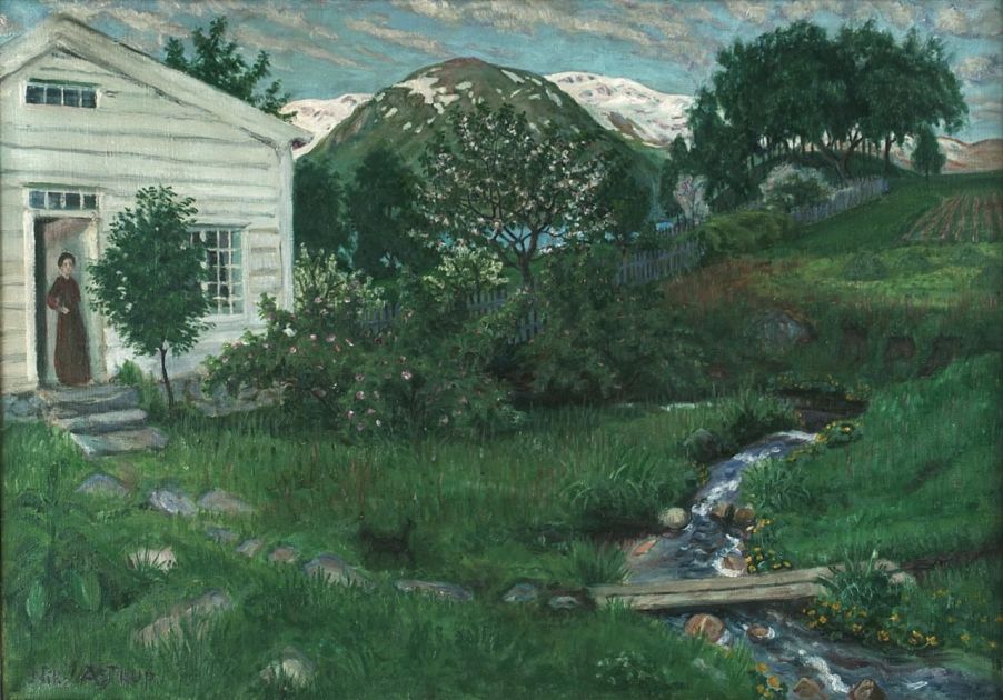As an artist and bohemian, he stood out in the conventional rural village where he grew up, but he remained in Jølster for most of his life, and it was here that he found the motifs for nearly all of his paintings. Throughout his entire artistic career he focussed on the same landscapes and locations and peopled them with the same human types. He imbued the landscapes with mysticism and an enigmatic symbolic content.