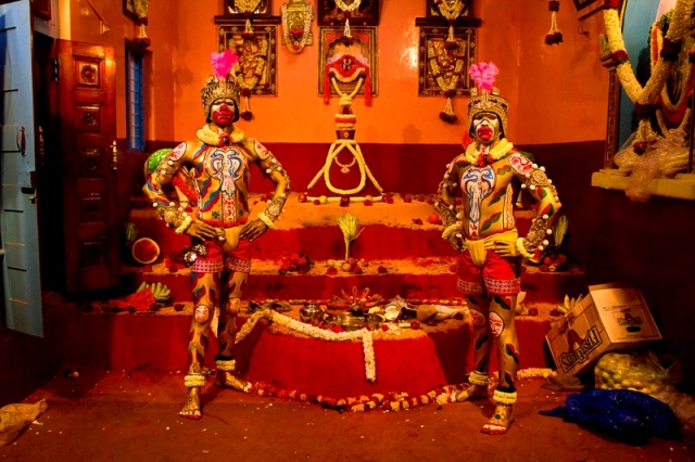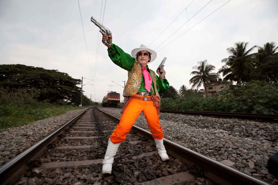 By Cop Shiva. This series is a result of the photographer’s interactions with Vidyasagar – a Bangalore resident who each day dresses up as Tamil film icon and politician MG. Ramachandran; who had an overpowering influence on the politics and cinema of Southern India. This work negotiates a lived reality and questions masquerade. The manipulation of identity through disguise and the idea of taking on a new persona is in many ways a comment on the prevalent influence of cinema in the socio-cultural context of South India. The artist captures the dichotomy of a split personality and the duality of man by photographing a man who spends his life masquerading as someone other than his true self. The series therefore looks at the idea of the polarity between reality and fantasy. These intimate portraits are located in Vidyasagar’s home, a private space invaded by Cop Shiva. It was here that the artist began to feel, and hopefully capture, the vulnerability, warmth and acceptance of Vidyasagar aka MGR.