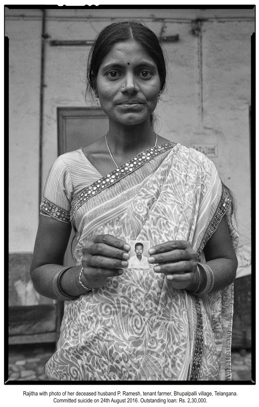 By Vijay Jodha. India’s agrarian crisis has claimed over 300,000 lives by way of farmer suicides since 1995. The survivors, predominantly widows, are both victims and the first witnesses in this on-going tragedy. This photography project is produced in collaboration with a few such witnesses. It puts faces to some of the grim facts with the intent of humanising this on-going tragedy rather than keep it distant and abstract, especially in cities where all policies affecting farmers get framed. The large-sized presentation makes the people and the issue loom over the viewer. The image scale also subverts visual culture in India where such large hoardings are a monopoly of the famous and the powerful. Accompanying almost every image here are names and relationship of the living with the departed, the size and location of their farmland, the quantum of unpaid loan on the day that farmer chose to end his life – details that restore some immediacy, individuality and a measure of dignity to the people appearing in the photo frame. In doing so, this project seeks to contribute towards ensuring that eventually no farmer is left without means or dignity. In that sense this project is driven by hope rather than despair.