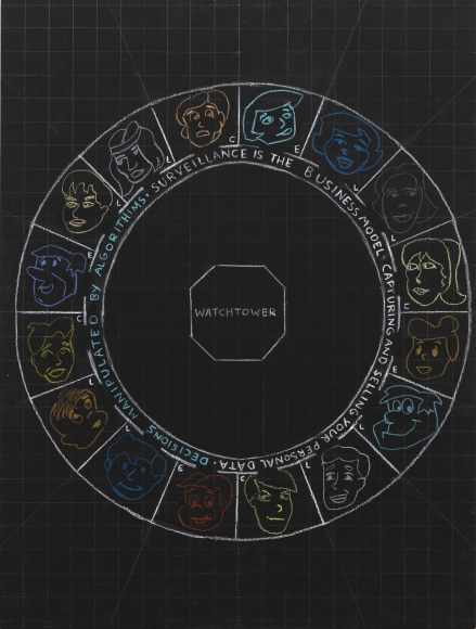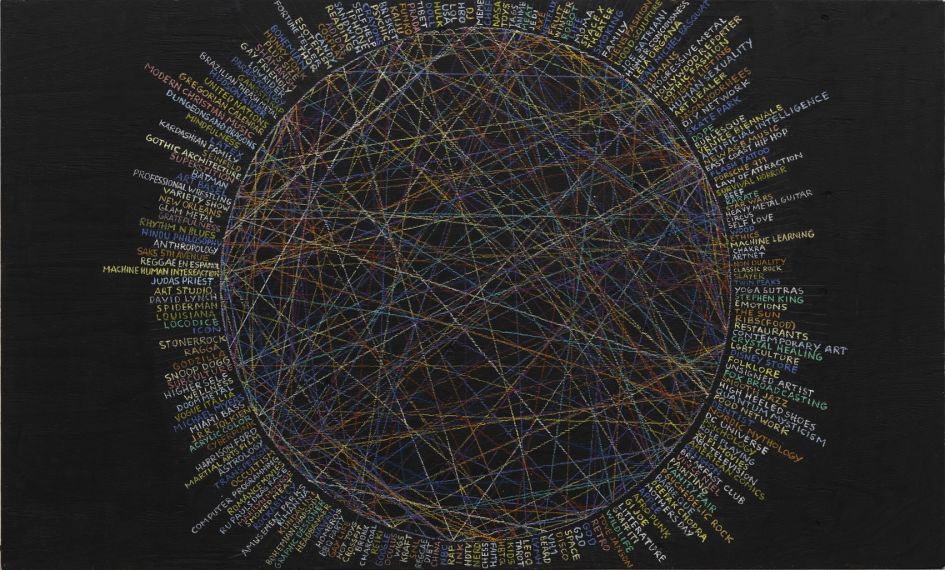 Other works in “Total Noise” include frequent searches on the internet, jobs lost to automation, samples of popular videos and image identification and tagging features.