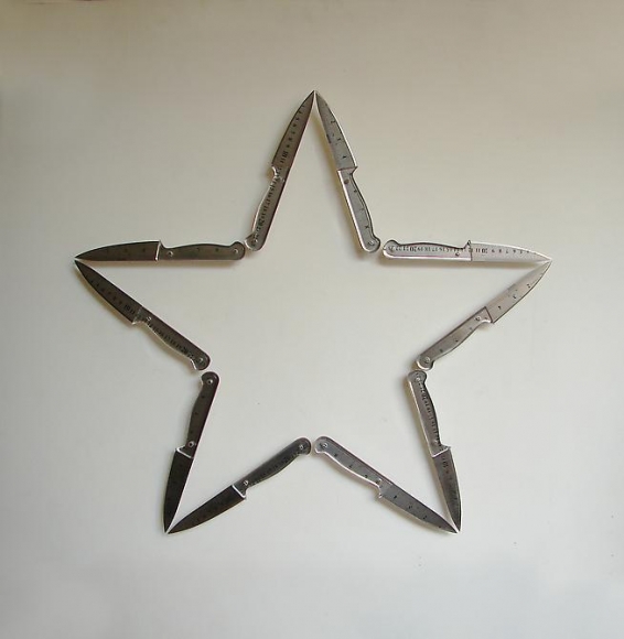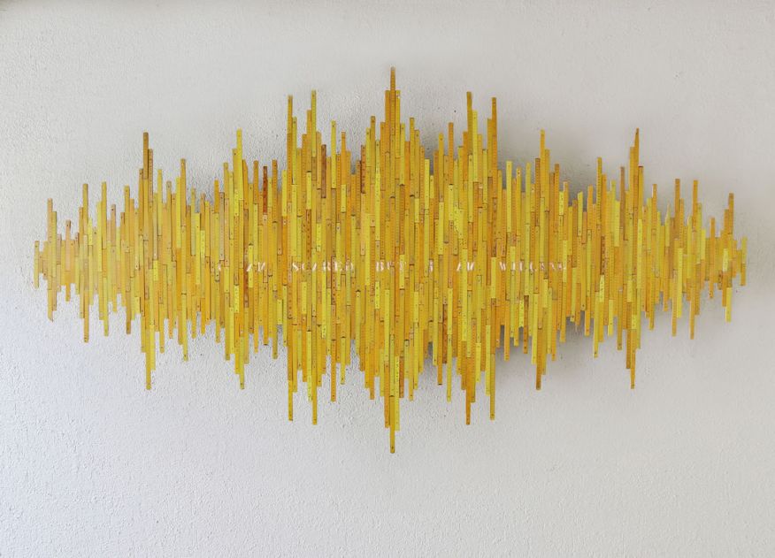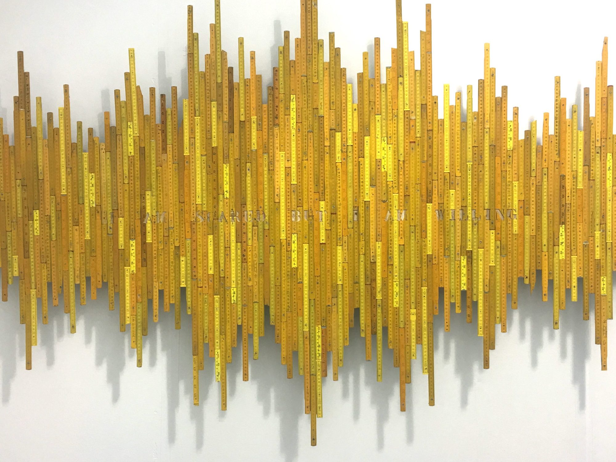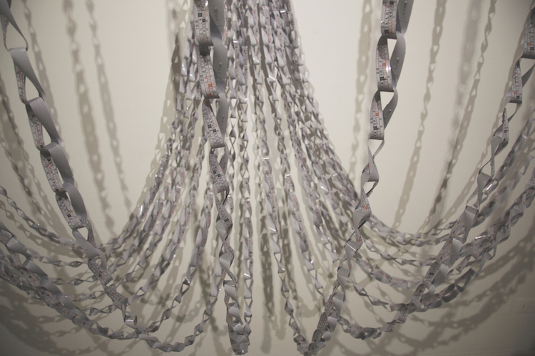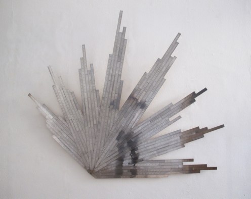In 2015, for his show “Extensa”, on the idea of immensity, Tyler transformed metal rulers into installations that connected the sculptural object with the history of philosophy. In Principio y Fin (Beginning and End), Tyler bent sections of metal measuring tapes, turning them into the symbol for infinity. Connecting each piece, the linked chain emerged from the wall and split into several strands, which connected to the ceiling.