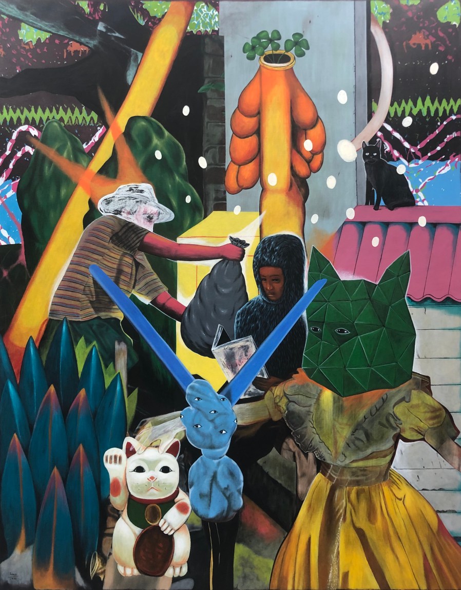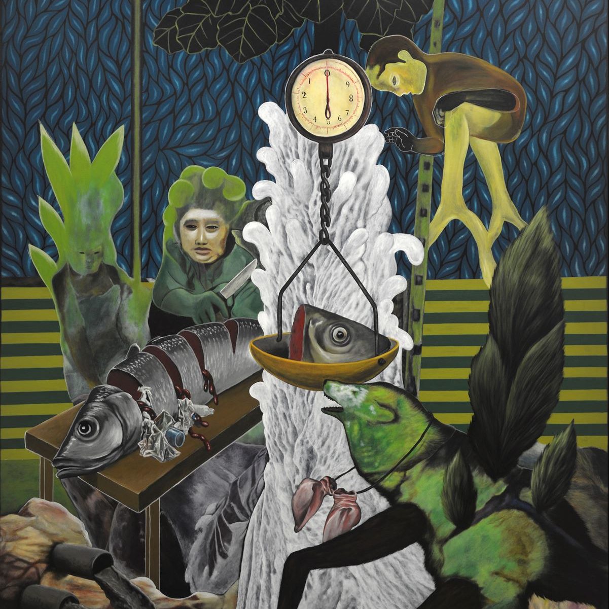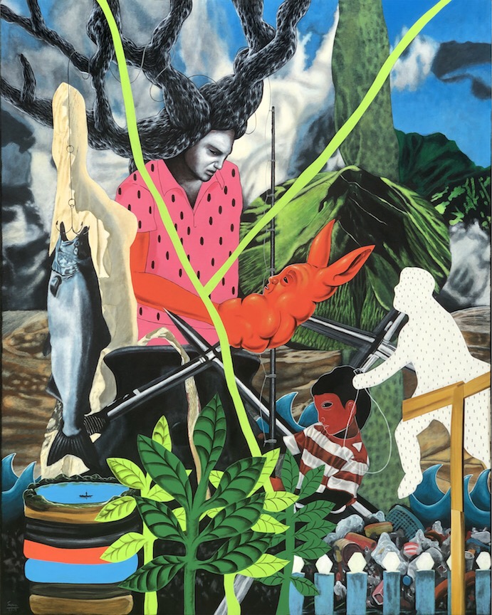 Lévi-Strauss’s ideas provide an appropriate lens by which one can begin to read the work of acclaimed Filipino artist Rodel Tapaya. Born in 1980 in Montalban and based in Bulacan, Tapaya has a painting titled Big Catch that simultaneously and masterfully exhibits the distinct dichotomy and seamless integration of science and myth.