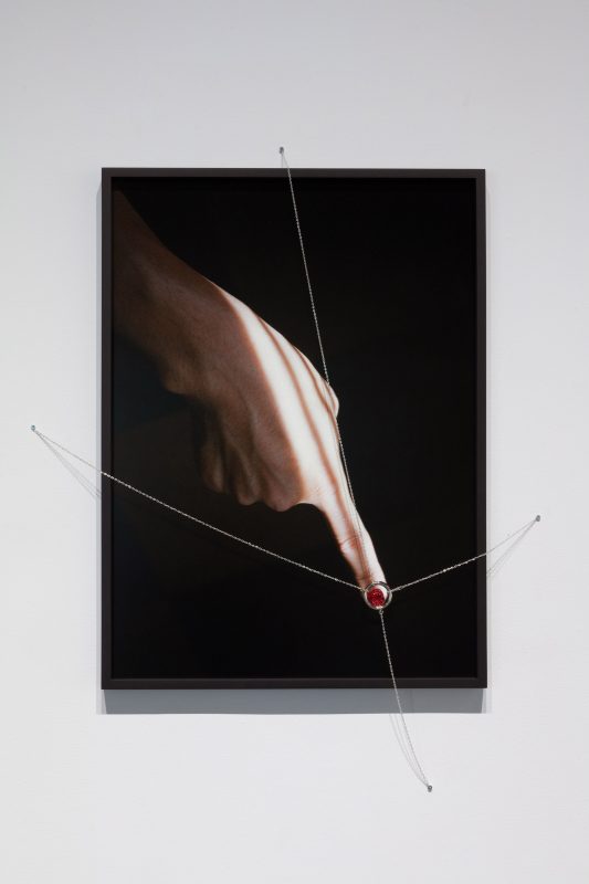 In “Turning Point”, a fingernail reaches for a little ring with chains emerging from its sides. Maybe it symbolises that moment where an entire life was changed—after an encounter with someone new. Other pieces refer to the gravity of love, queer attachment, violence, tears and fire. Together, the works of the exhibition give us an unusual perspective into the very phenomenon that makes us human—our capacity to feel for and want another.