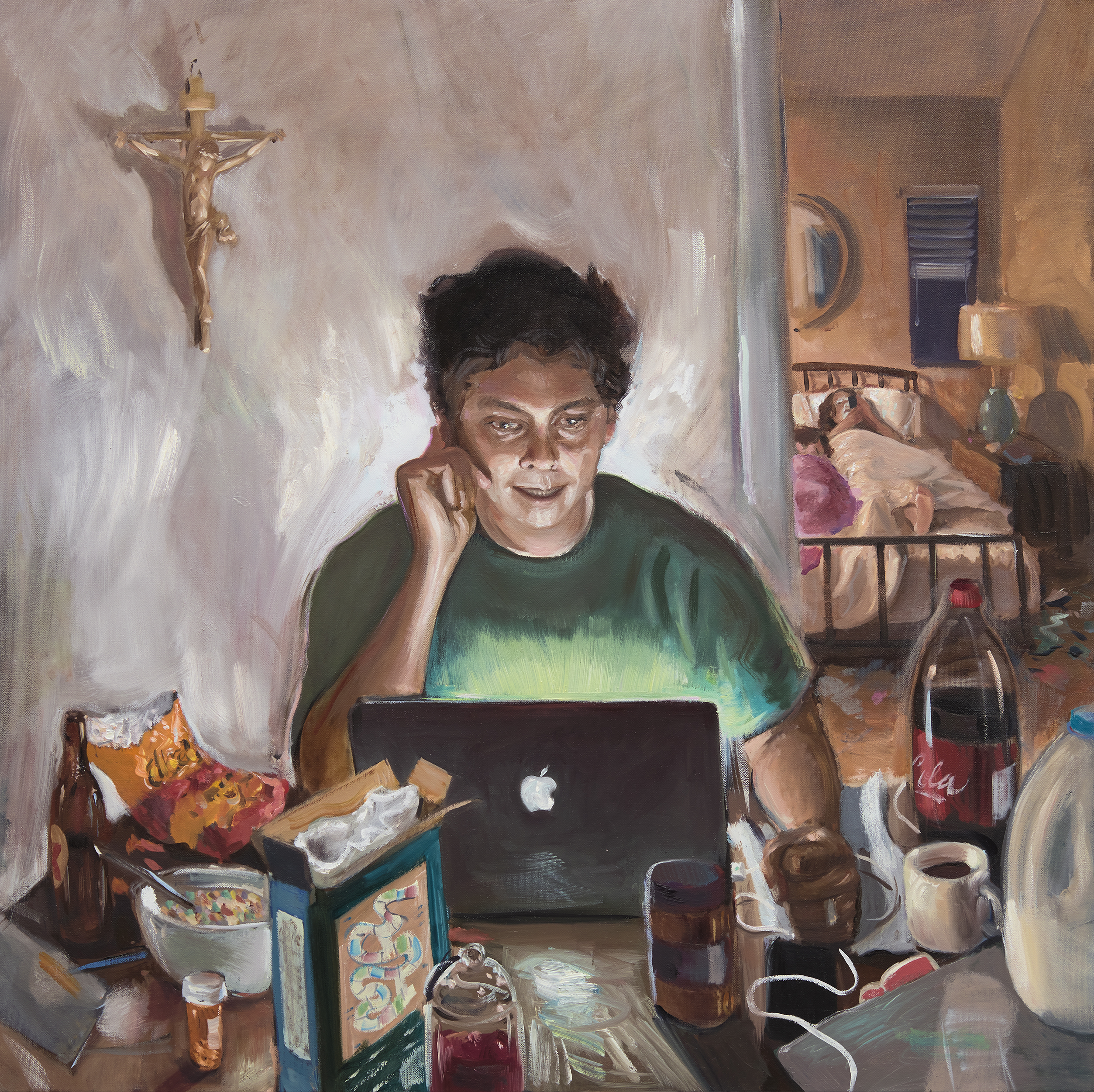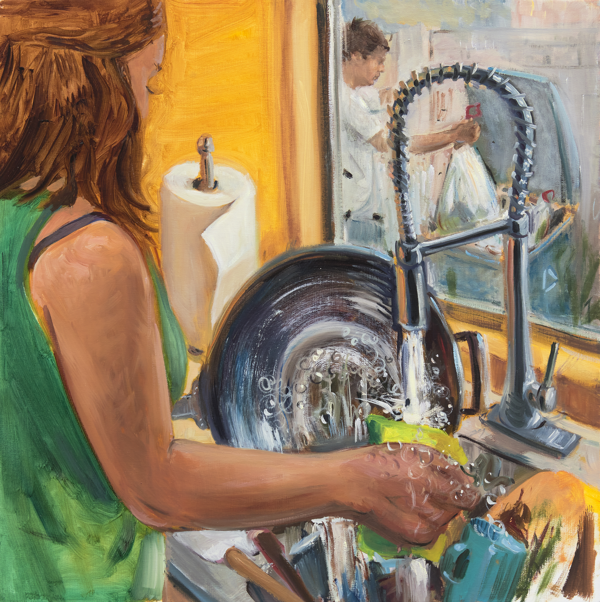 Larry writes beautifully: “The mundane reminds me of our commonality and the relatable nature of the human experience. Ordinary routines are infused with issues of identity, responsibility, ambition, and purpose. I see the commonplace as an arena for sacred reflection on the complex nature of being, and a platform to explore painting’s power to promote empathy and wonder.”