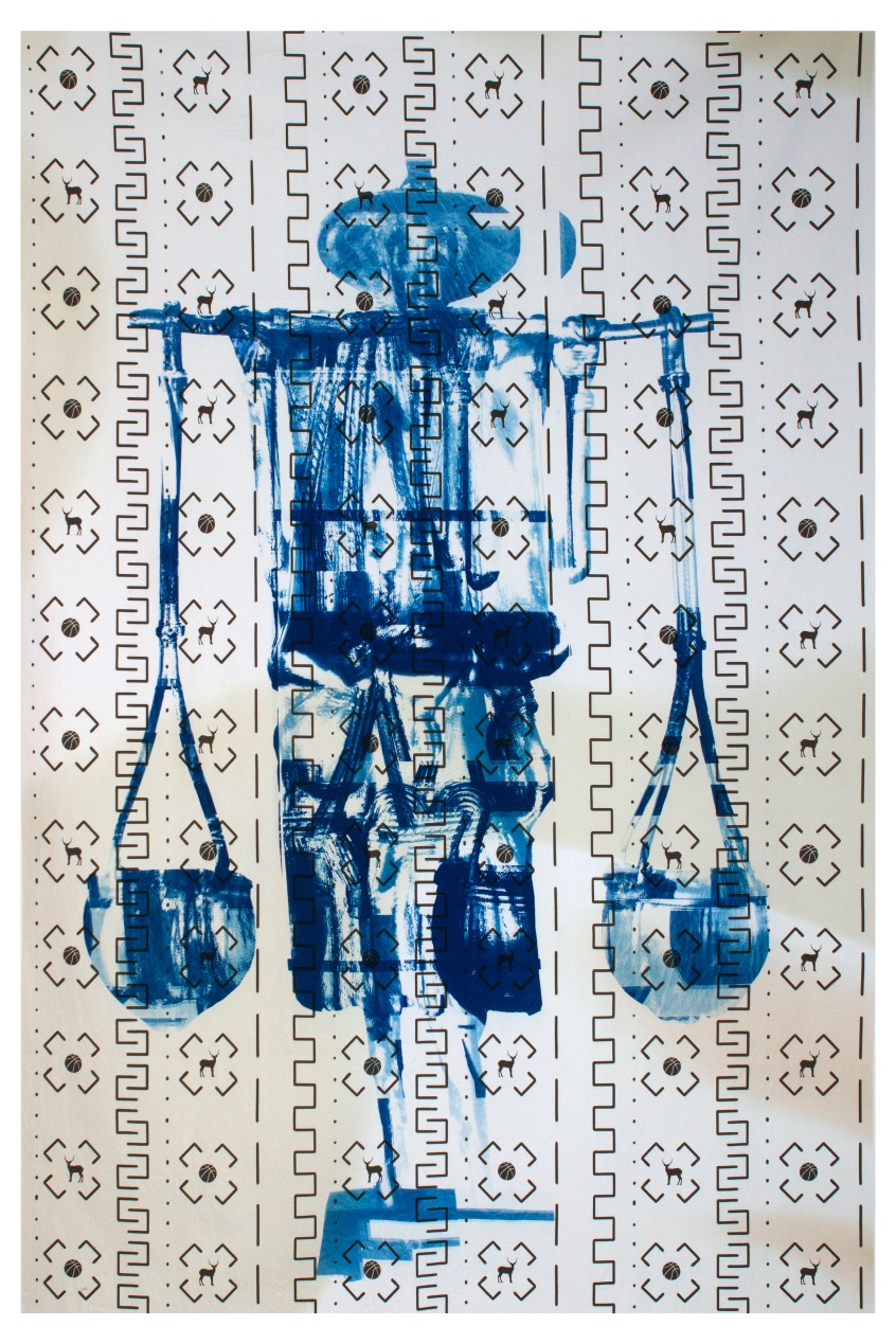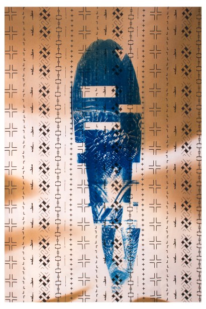 “Neo Bogolan” shows cyanotypes depicting glitched photographs of African decorative art objects printed on mud cloth inspired cotton fabric. It is about the relationship and tensions between African art memorabilia (sold in Africa) and authentic African art (determined by Western art institutions). Tell us more about this issue.