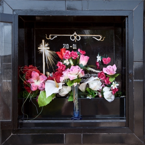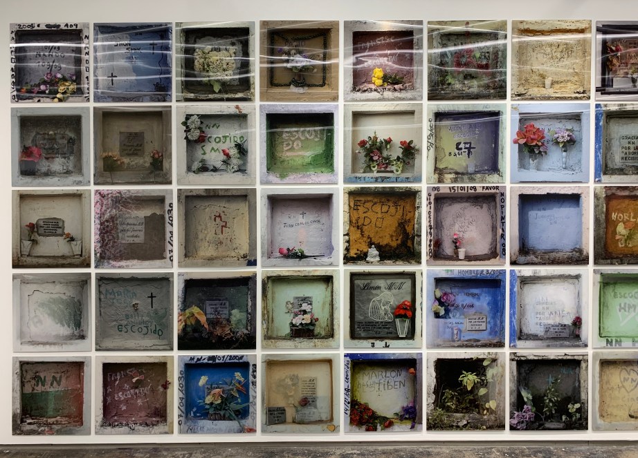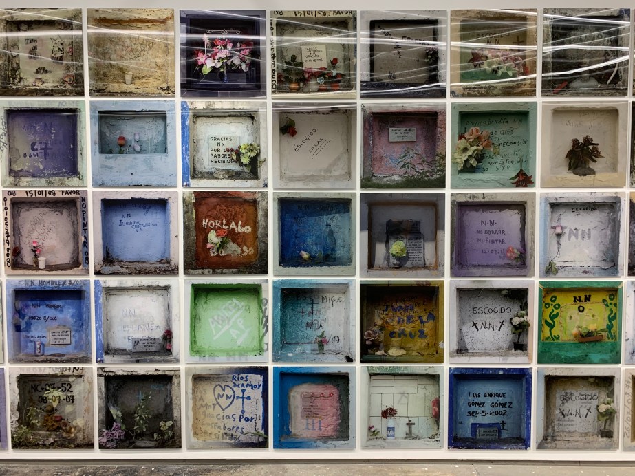 Echavarría uses lenticular prints in order to capture two moments, months or years apart in each photograph. The sixty five photographs are installed in a grid arrangement, recreating the original structure of the NN mausoleum. Despite its somewhat superstitious and trade-like rationale, the practice ultimately moves its perceiver for its great humanity. And the artist documents it with great attention and heart. Quite dramatically is the viewer of the photographs reminded of the potential and sacred preciousness of every single life—belonging to any place or period.