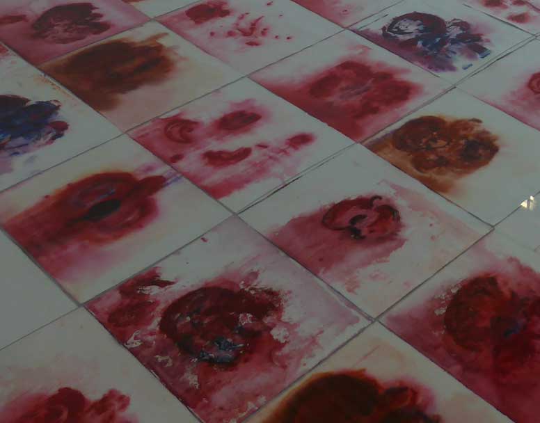 Thurstun made this piece referencing orchids, flowers that can look like female genitals. There is a society called Orchid Project which has a vision of a world free of FGM, and her work referenced this: the mutilation of young girls. The title also references the “cutting season”. In this country it is the summer holidays, when young girls are mutilated. The piece shows flowers which have been cut and are bleeding. It is an exhortation to stop this barbaric ritual.