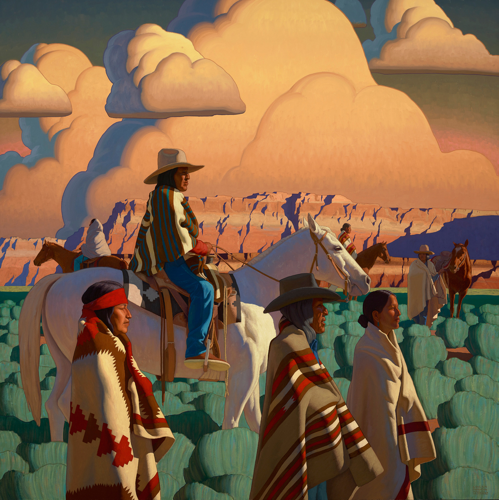 “It began with an attraction to the desert landscape originally,” writes LA-based painter Logan Maxwell Hagege (born 1980). “I had studied portraits and figures and wanted to start putting them in my landscapes. That was a love of mine, drawing and painting people. I wanted to incorporate them into my paintings of the West. Native Americans and cowboys are such a strong part of the West, so they started showing up in my paintings.” The “West” meaning Arizona, New Mexico, and adjacent portions of California, Colorado, Nevada, Oklahoma, Texas and Utah.