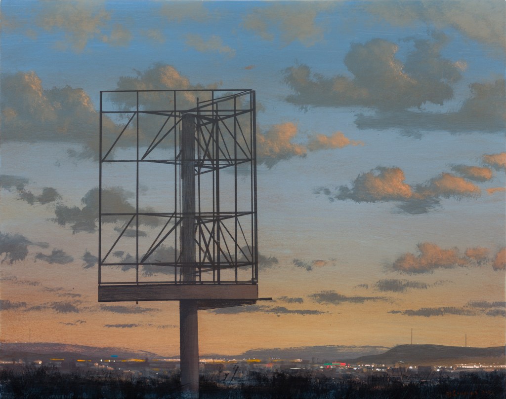 Day and night, urban and suburban, presence and absence, here and there—the notion of “in-between-ness” significantly characterises the paintings of South African artist MJ Lourens. Executed with photorealistic precision, the artworks seem like quietly powerful representations of the liminal and the peripheral, of the process of transformation.
