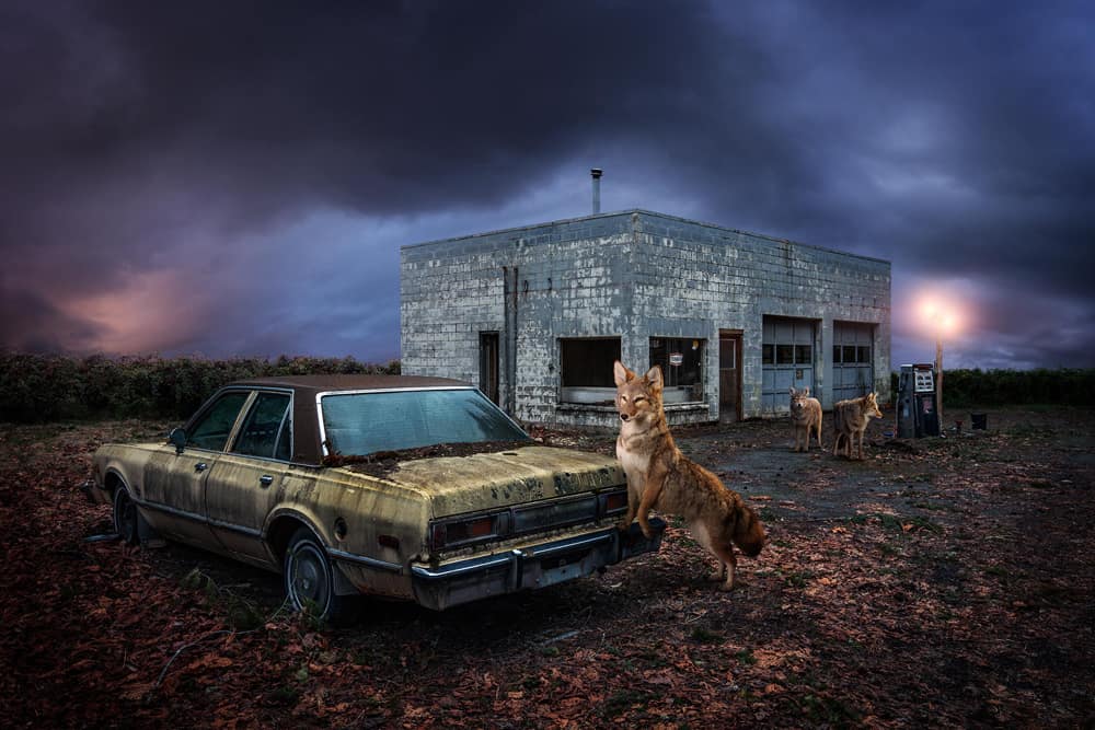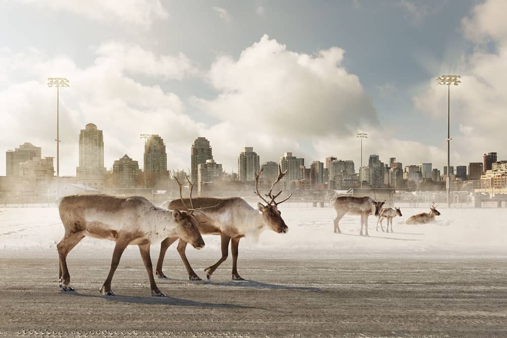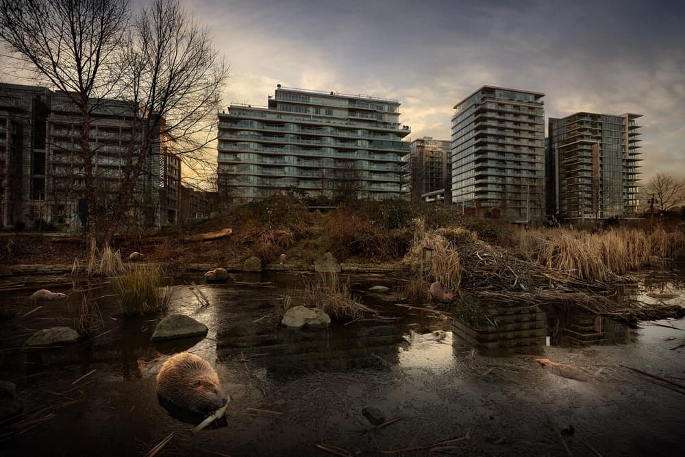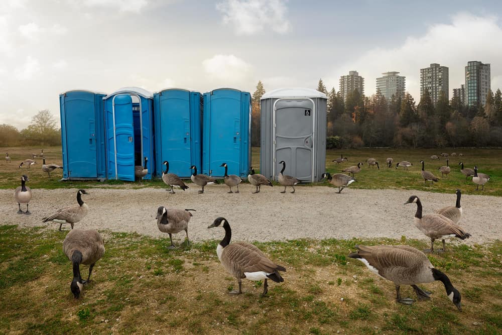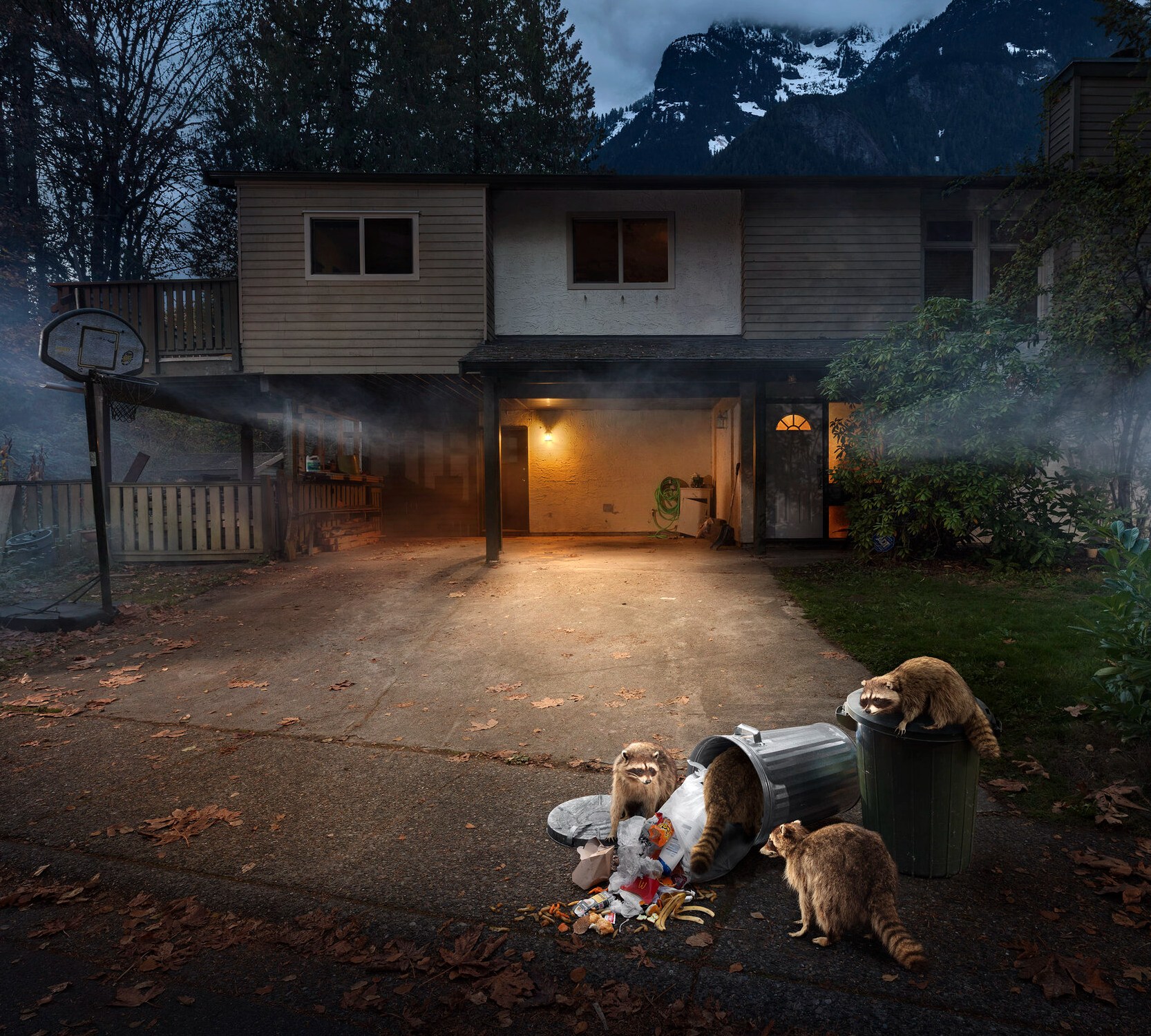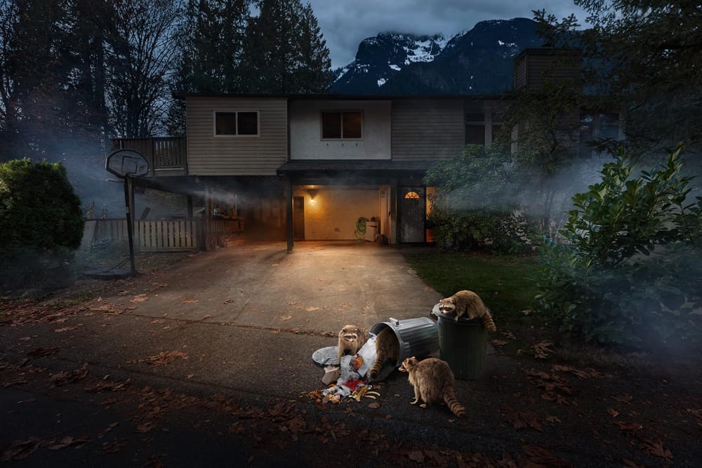 In his series “Human:Nature”, Vancouver-based photographer Kevin Lanthier presents his city’s many non-human residents. As human activity alters and controls more of the earth’s surface, wildlife are forced to adapt. Some species are displaced from these areas, some live at the fringe, and others become full-time residents of what we tend to think of as “our” spaces. As their behaviour adjusts, it can seem as though these non-human neighbours of ours take on some of our own patterns and characteristics, reflecting our own nature back to us. We’re also forced to re-examine what “natural habitat” now even means for many of them. As such, these images present moments of day-to-day life for several commonly found species, as seen in tableau, not unlike the dioramas in natural history museums, but updated for the reality of their new habitats.