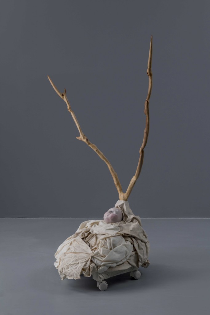 Inspired by the phenomenon of the “fugue state”, Turkish artist Başak Bugay’s solo exhibition “Fugue”—that ran from December 16, 2021 to February 12, 2022 at Zilberman Gallery, Istanbul—featured mixed-media sculptures and ink drawings of figures suspended in their inner worlds, as in purgatory, as in dreams that are thought to be real.
