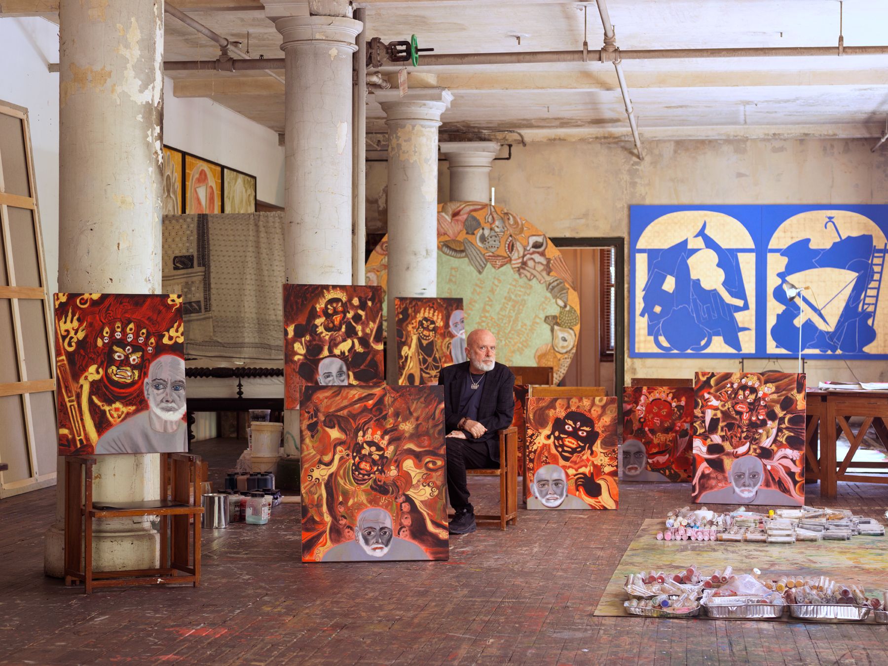 For more than six decades, Francesco Clemente has forged a singular career that seeks intercultural resonance, addressing the philosophical dualities of mind and body, freedom and constraint, and part and whole. In paintings, prints, frescoes, photography, book editions, and installations, he nurtures a signature poetic intensity, using metaphor and symbolism to consider the nature of the self. Dividing his time between New York, Chennai (formerly Madras) and Varanasi, India, Clemente is inspired by the Tantra traditions of India and Tibet, Beat poetry, the ritualism of Joseph Beuys, and Greco-Roman art. His frequently collaborative practice has been linked to the Italian Transavanguardia group of the late 1970s as well as New York’s concurrent neo-expressionism. Clemente frequently turns to portraiture and has painted, among others, Jean Michel Basquiat, Toni Morrison, and Jasper Johns.